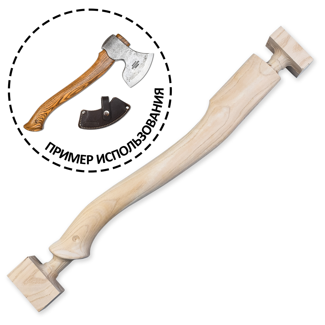 На концах топорища специально сделаны бруски, обеспечивающие сохранность при транспортировке. Также, "ножки", ведущие к брускам, являются жертвенными частями, по которым вы смело сможете бить киянкой при усадке головы топора на топорище. Тем самым вы не повредите саму рукоять будущего топора.