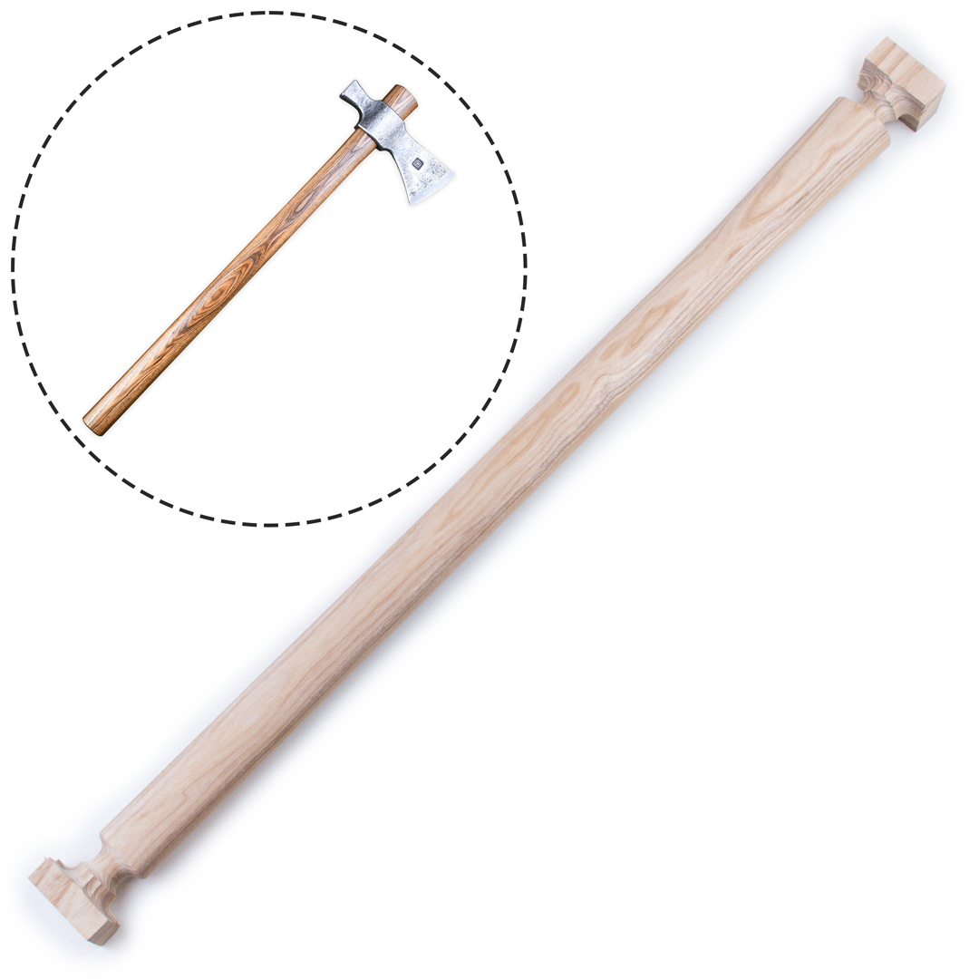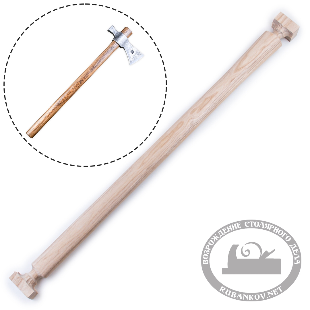 На концах топорища специально сделаны бруски, обеспечивающие сохранность при транспортировке. Также, "ножки", ведущие к брускам, являются жертвенными частями, по которым вы смело сможете бить киянкой при усадке головы топора на топорище. Тем самым вы не повредите саму рукоять будущего топора.