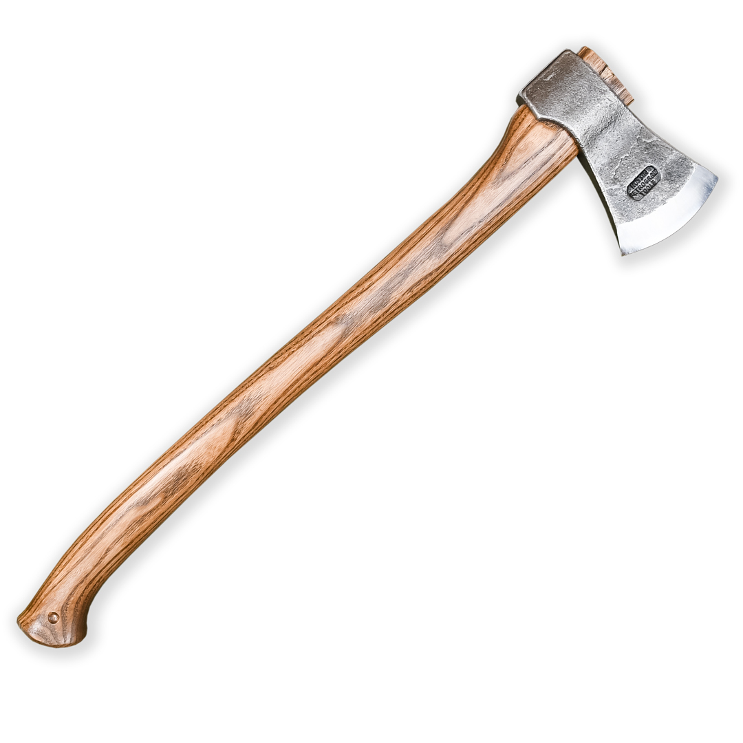Каждый топор Петроградъ выполнен вручную с предельным вниманием к деталям. Для головы топора используется рессорная сталь 65Г, обладающая наилучшей ударной вязкостью. Рукояти изготавливаются из цельного куска массива ясеня без сучков и покрываются специальным маслом, обладающим экстремальной устойчивостью к образованию царапин.