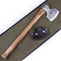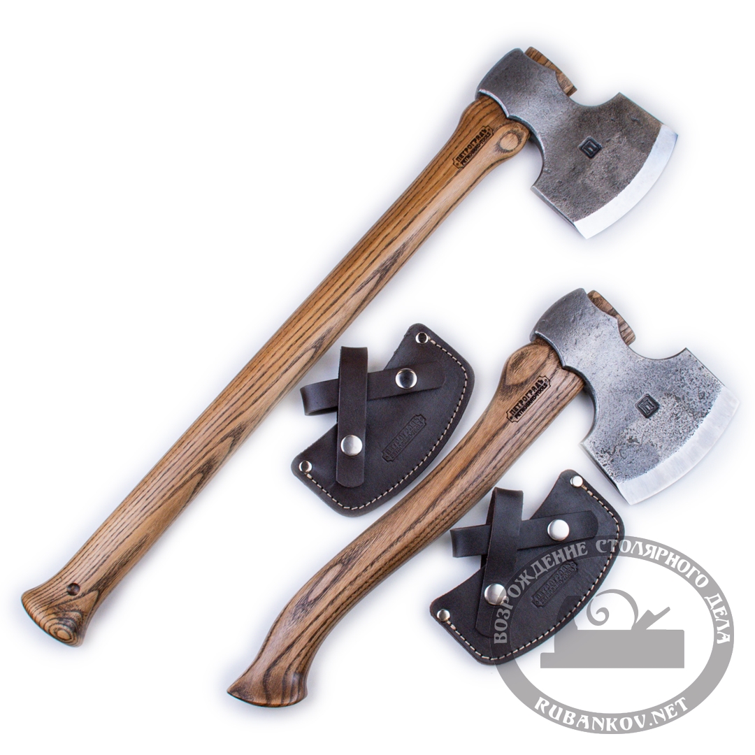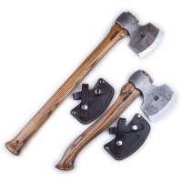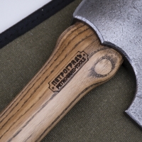 - Топор комплектуется кожаным чехлом на режущую кромку для защиты её от повреждений и матерчатым чехлом для защиты от грязи всего топора.