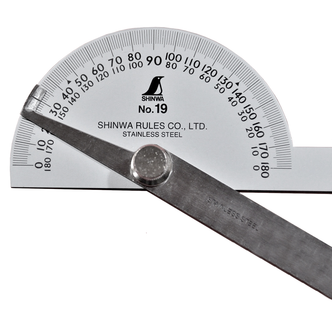 Угломер механический Shinwa D90мм*100 мм, c двумя линейками имеет гравированную шкалу и покрытие цифр из высокопрочного к истиранию черного хрома. Шкала имеет большие и хорошо читаемые цифры. Производство - Shinwa (Япония)