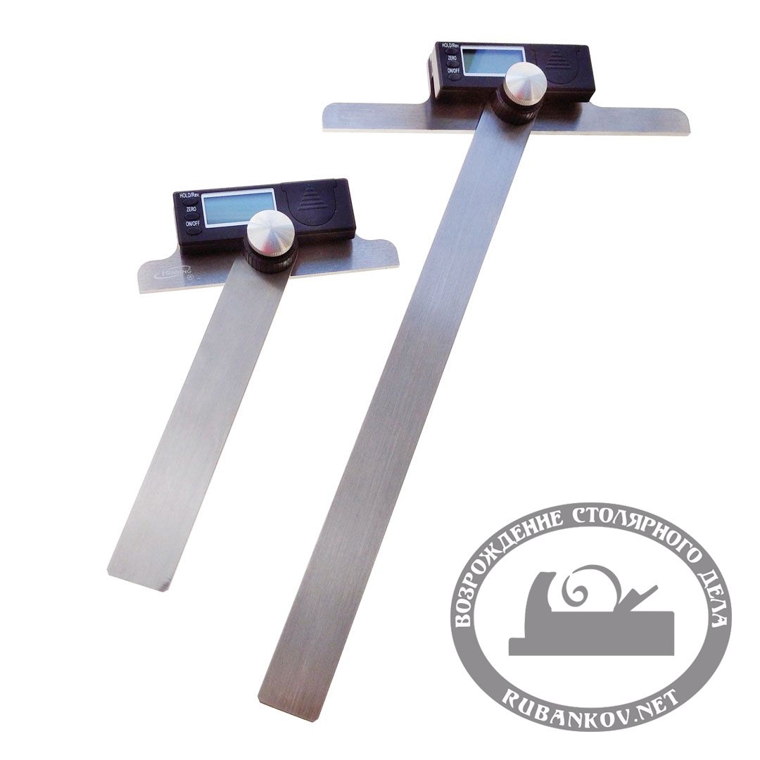 Угломеры электронные Т-образные iGaging, 0-180град. Две модели 150 и 300мм. Это цифровой измеритель угла изготовленный из прочного твердого сплава, имеет функцию фиксации и диапазон измерения 180 градусов. Направляющие выполнены из материала толщиной 4мм. Может использоваться как угольник с подошвой. Цифровой ЖК-дисплей с хорошо читабельными цифрами. Удобная металлическая ручка фиксации угла. Точность измерения 0,05 град. Погрешность 0,5 град. Батарея СR2032 3V в комплекте.
