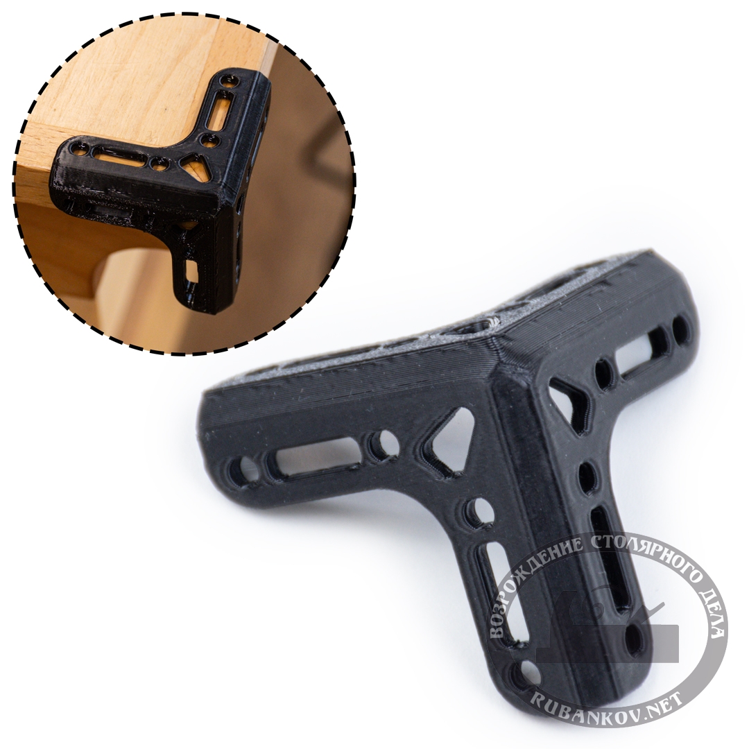 Угловая накладка на мебель. Выполнена из прочного пластика методом 3d печати. Размеры накладки: 50*50*50 мм. Может применяться для установки на нижние углы мебели вместо ножек. Производство – фабрика Петроградъ (Россия).