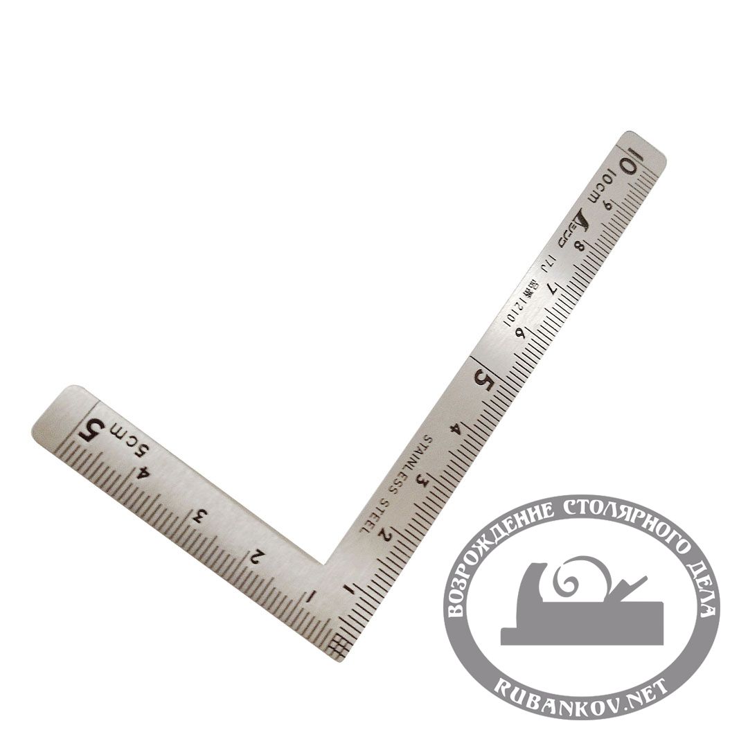 Угольник плоский Shinwa, 100*50мм. Ширина полотна - 10мм, толщина - 1.2мм. Крупные, хорошо читаемые цифры. Двусторонняя внутренняя (шаг 1см) и внешняя (шаг 1мм) разметка. Материал - нерж. сталь. Масса - 13г. Погрешность 0.1мм. Производство - Shinwa (Япония).