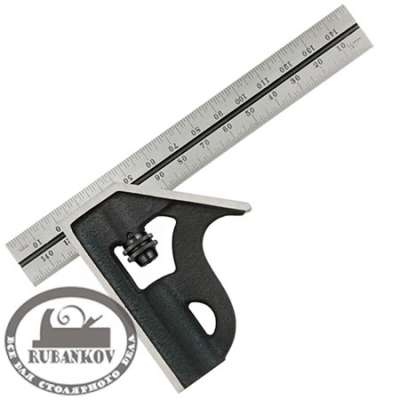 Перо имеет двухстороннюю гравированную шкалу. С каждой стороны шкала имеет два варианта делений с шагом 1 мм и 0.5 мм. Длина подошвы - 60 мм и 30 мм, ширина - 13 мм. Определение и разметка прямых углов (90°), углов 45°, измерение глубины, измерение длины. Винт блокировки подошвы. Линейка выполнена из прочной закаленной стали, подошва из чугуна. Подошва точно скользит по выгравированному пазу в линейке. Производство - Starrett (США).
