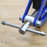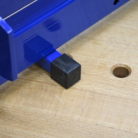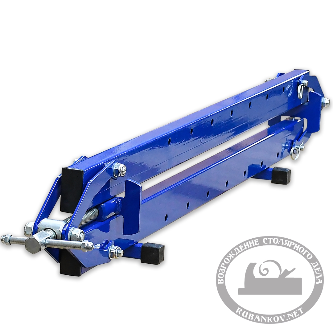 Прижимной блок из высокопрочной стали обеспечивает высокое равномерное давление на ламели. Прочный винт обеспечивает качественный прижим. В процессе эксплуатации винт необходимо очищать от опилок и смазывать любым машинным маслом. Это значительно увеличит срок службы инструмента. Благодаря специальной конструкции вайм на склеиваемые заготовки оказывается равномерное давление с 4-х сторон. Это обеспечивает прочную склейку без щелей при условии качественной прифуговки делянок и качественного клея. Два съёмных упорных штифта со съемной шпилькой позволяют оперативно переставлять задний упор для регулировки необходимых размеров.