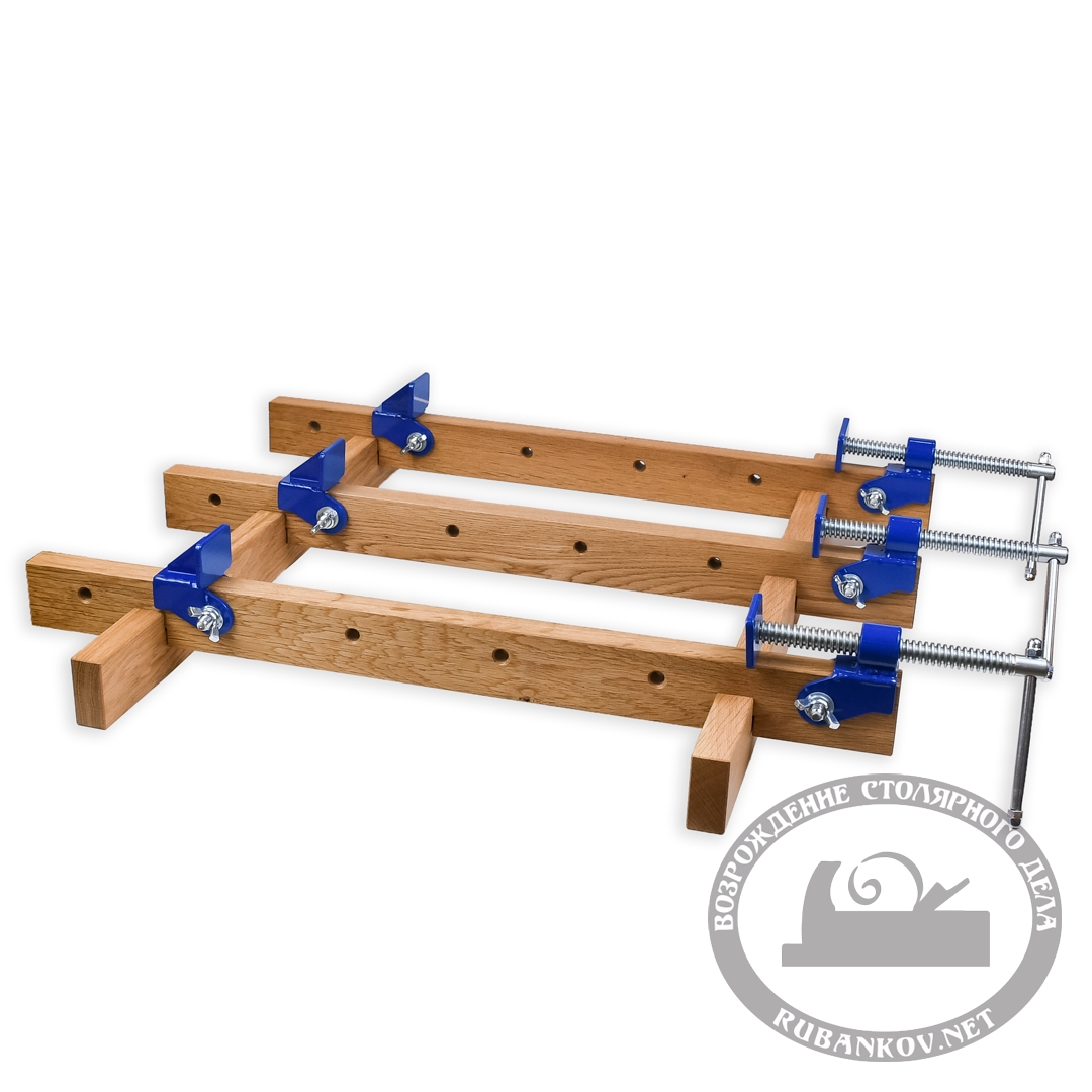 С помощью упоров ПЕТРОГРАДЪ, входящих в набор, можно самостоятельно создавать подобные ваймы для склейки щитов любых разумных размеров.