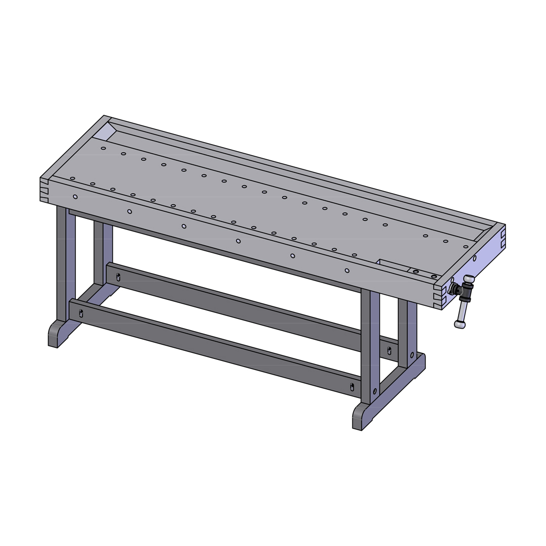 Верстак 2000*600мм, c лотком, ПТ - нет, БТ - сухарь с винтом HV582. Выполнен из массива бука. Габариты верстачной доски - 2000х600мм, толщина щита - 40мм. Обвязочная доска высотой 120мм с соединениями на ласточкин хвост. Производство фабрика Петроградъ (Россия).