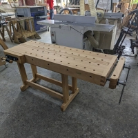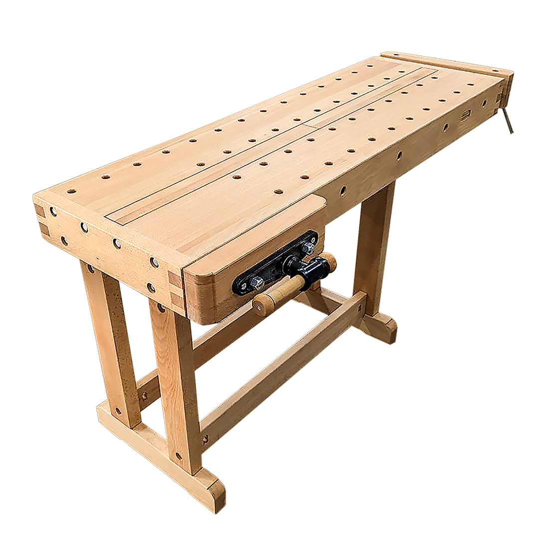 - верстак выполнен из экологически чистых материалов. Деревянные части - из бука, пропитка - нейтральное масло. Винтовые пары верстачных тисков - из металла.