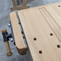 - классические передние тиски позволяют зажимать стандартные детали. Детали могут зажиматься двумя способами: как непосредственно подвижной и неподвижной губками верстака, так и упорами (колками), вставляющимися в отверстия тисков и верстачной доски. ; упора входят в базовую комплектацию верстака.
