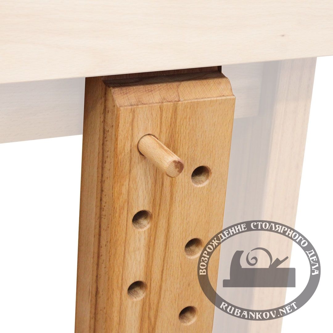 Переставной вертикальный верстачный упор позволяет расширить функциональность верстака. Упор служит для поддержки детали при зажиме основными тисками. Расстояние от верха верстачной доски до первого отверстия - 190мм.