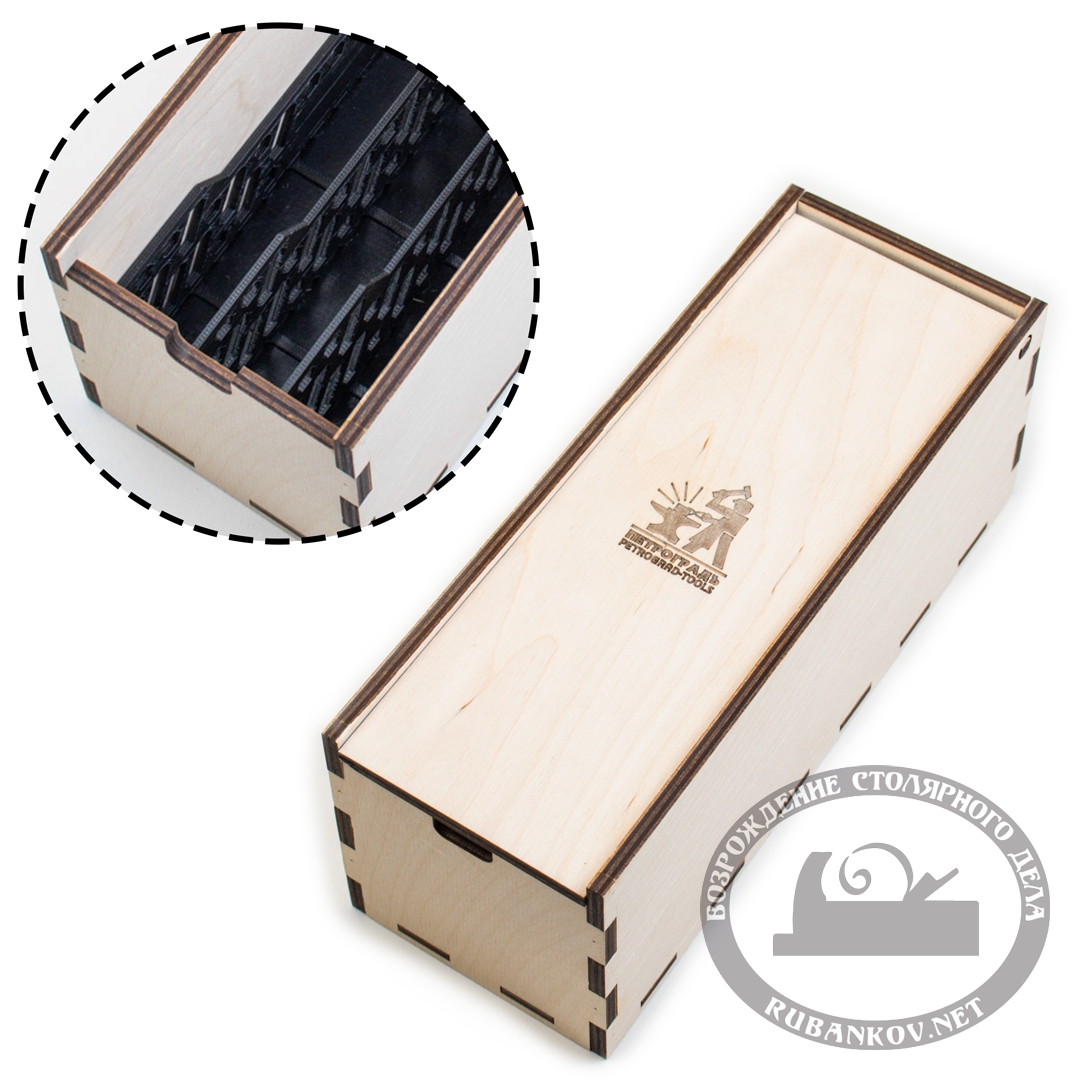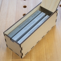 Ящичек для абразивов 200*70*20мм, 3 ячейки. Очень удобен для хранения абразивных камней ПЕТРОГРАДЪ. Габаритные размеры 249х96х84мм (ДхШхВ). Бокс рассчитан на 3 камня размером 200*70*20мм. Камни размещаются в посадочных местах с небольшим запасом для вентиляции и удобства извлечения. Внутренне наполнение – пластиковый контейнер для 3-х абразивов. Корпус сделан из фанеры толщиной 6мм. Абразивные камни в комплект не входят.