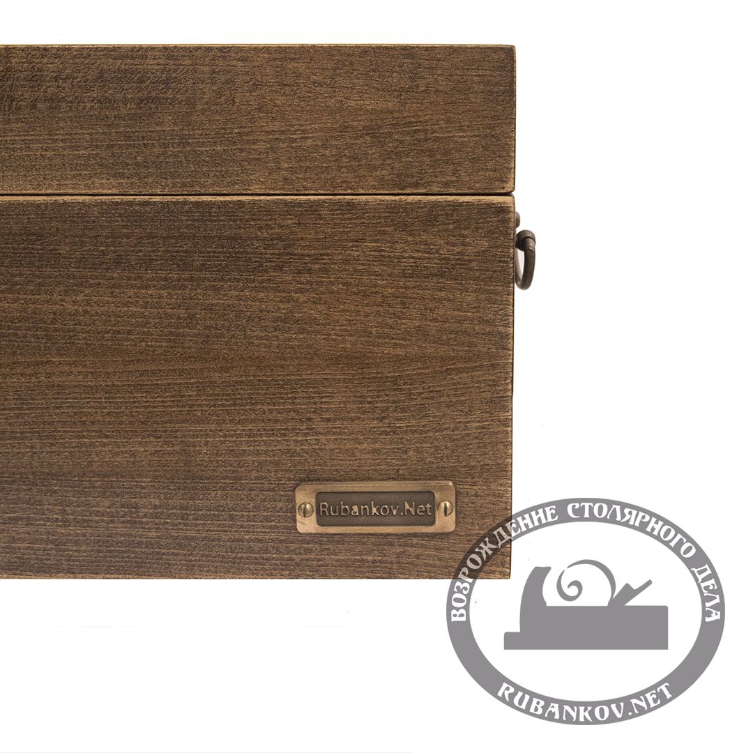 Ящик ремесленный RUBANKOV, модель 2, 630*220*195мм, покрытие - дуб антик, предназначен для хранения инструмента, расходных материалов и пр. Для размещения инструментов доступен основной объём ящика и верхний лоток с кожаными ручками позволяет держать инструмент всегда под рукой. Материал- бук, отделка колерованное масло, фурнитура натуральная кожа и патинированная сталь. Производство Россия.