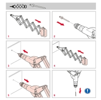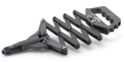 Ручной профессиональный заклепочник для установки тяговых заклепок диаметром от 3.0 до 6.4 мм. Усиленная конструкция в виде гармошки" выполнена из прочной стали. Литые алюминиевые корпус и рукоять. Конструкция в виде "гармошки" позволяет работать в ограниченном пространстве прилагая усилие в том числе и всей массой тела. Входящий в комплект ключ-замок позволяет зафиксировать заклепочник в сложенном положении, что удобно при переноске. В комплекте 5 насадок для всего рабочего диапазона заклепочника (1 установлена в головке и 4 в рукояти). Производство Emhart Teknologies.