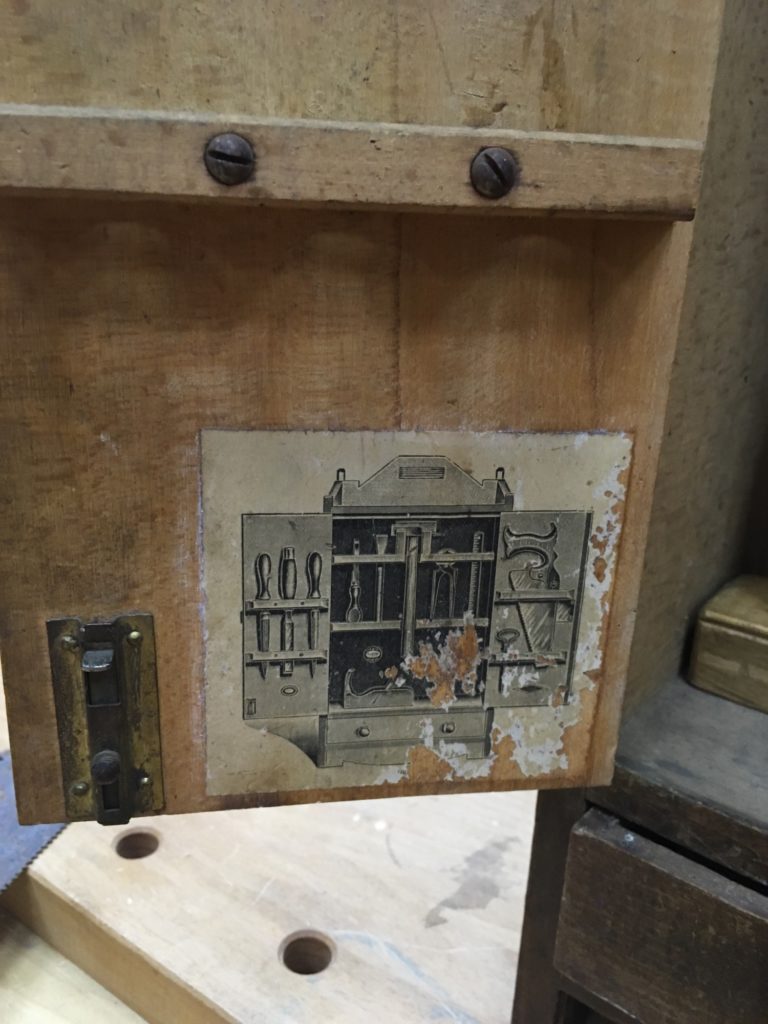 Ну и в завершение, не совсем столярный, но красивый инструмент с интересным клеймом — вероятно это двуручная шинковка с явно масонским клеймом. Следом идет еще один не менее интересный инструмент. Нам кажется, что это все же вентильма для нарезания резьбы, однако как она работает нам пока понять не удалось.
