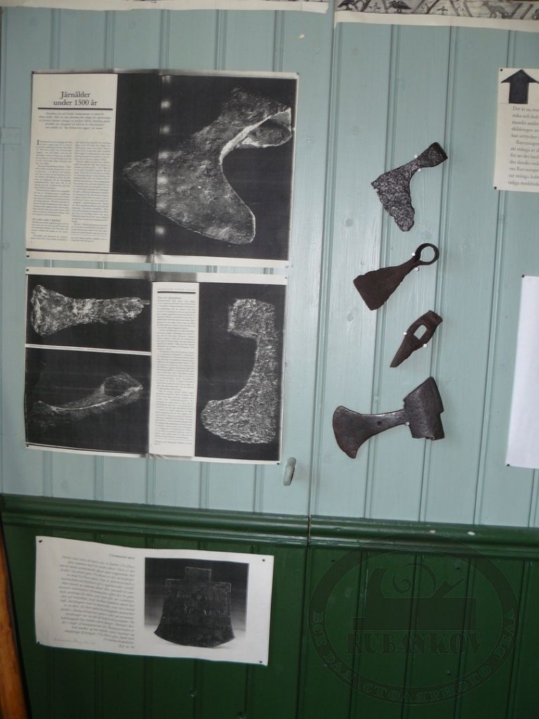 В музее представлены старинные топоры найденные при различных раскопках в Швеции