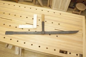 Вот мы и подобрались к тому, что же такое Bisaigue. Это — двухсторонний плотницкий инструмент для формирования шиповых соединений. Одна сторона инструмента имеет форму и заточку долота, а другая представляет собой плотницкую стамеску.