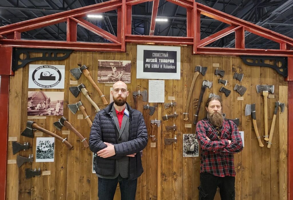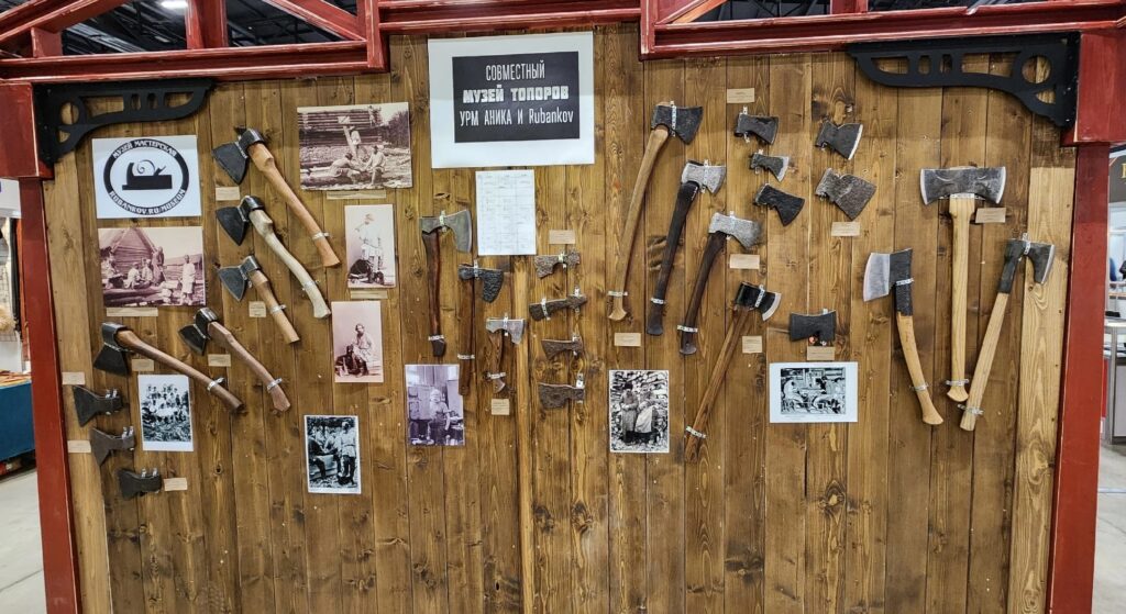 В этом году мы решили не отставать от наметившихся трендов и расширить свой стенд, проведя тематическую выставку старинных топоров из нашей коллекции совместно с друзьями из УРМ «Аника».