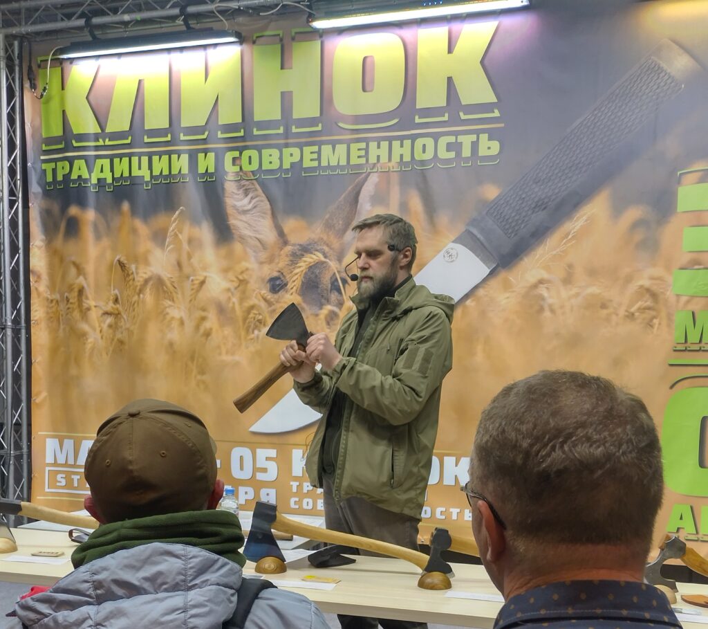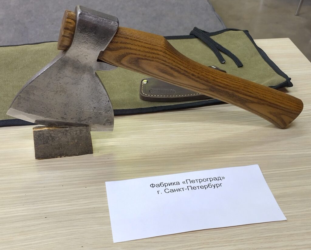 Отдельным пунктом программы выставки стал смотр топориных производителей и лекция Андрея Ванькевича о заточке топора. В мероприятии приняла участие продукция нашей фабрики «Петроградъ» в лице моделей «Можайск» и обновлённого «Брянска«. Отметим, первый из них — единственный топор на рынке, представляющий собой полнофункциональную реплику пехотного саперного топора Российской Императорской Армии, и при этом выпускающийся серийно! Подробнее об истории этого типа можно прочитать в нашем журнале «Мастер и мастерская» №2(15).