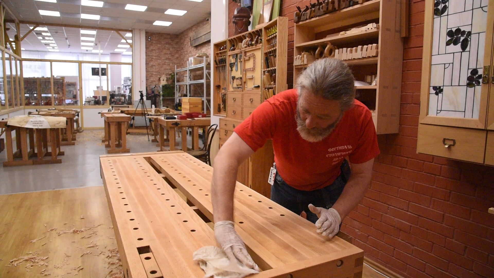 Вот уже почти 20 лет мы работаем с твердыми породами древесины (бук, клен, дуб, ясень, граб), используем классические столярные соединения для повышения надежности и узнаваемости марки. В наших проектах мы так же используем проверенные временем клеи, а для финишной отделки используем глубокую пропитку современными маслами для дерева. Мощная верстачная доска и жесткая обвязка на ласточкин хвост дают монолитную геометрию, а перфорация верстака отверстиями 19 мм позволяет использовать современные упоры, валеты и прочие прижимы и приспособления. В своей практике мы выпускаем верстаки с тисками (передние, задние, вертикальные, параллельные), можем дополнить комплектацию верстака лотком, ящиками или полками, а также выпускаем готовые решения для школ: верстак ученический с двумя тисками или комбинированный ученический верстак с четырьмя винтовыми парами.