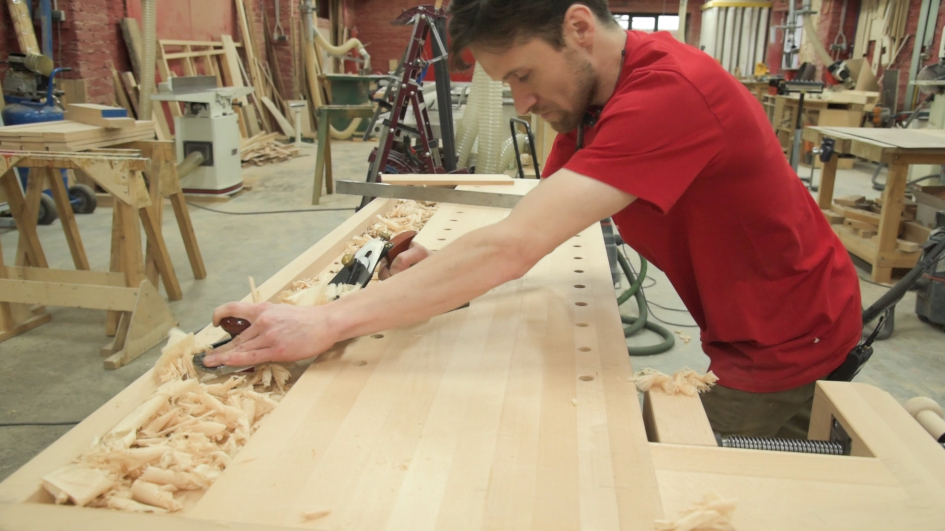 Отметим, что верстак из дерева легко восстанавливать: поверхность можно выровнять рубанком, затем по желанию пройтись шлихтубелем и он снова абсолютно как новый. Такие классические верстаки служат в мастерской веками.