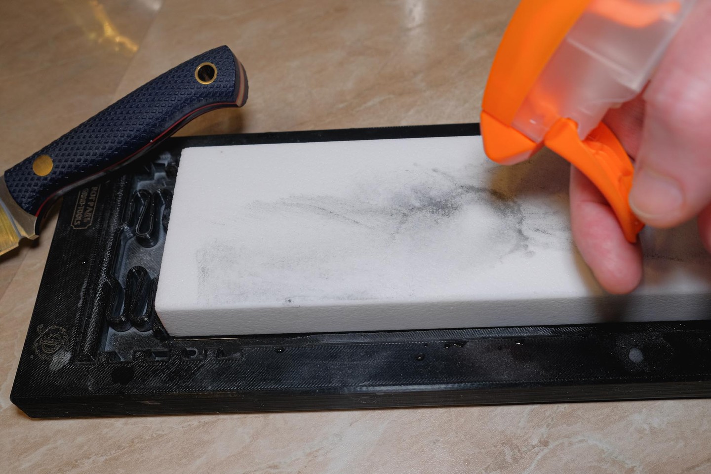 Да, бруски после работы я сразу подравнивал и очищал, что, учитывая их обновляемость, требовало минимум времени: 15 и 12 секунд для 500 грит и 2000 грит соответственно.