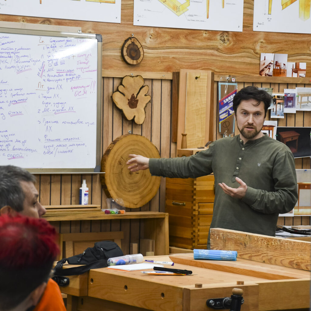 Мы не просто учим делать изделия — мы объясняем почему они должны быть сделаны именно так. Мы используем исключительно ручной инструмент, чтобы вы могли почувствовать текстуру и изучить свойства дерева. Только это позволяет понять природу материала и развить чувственную связь с ним.