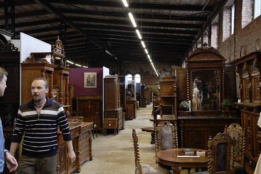 Салон площадью 1200 м² располагается в историческом центре Санкт—Петербурга — на Васильевском острове. Там же находится и реставрационная мастерская. На территории «Культурного квартала “Брусницын”», на четвертом этаже. Адрес: Санкт-Петербург, Кожевенная линия, д. 30