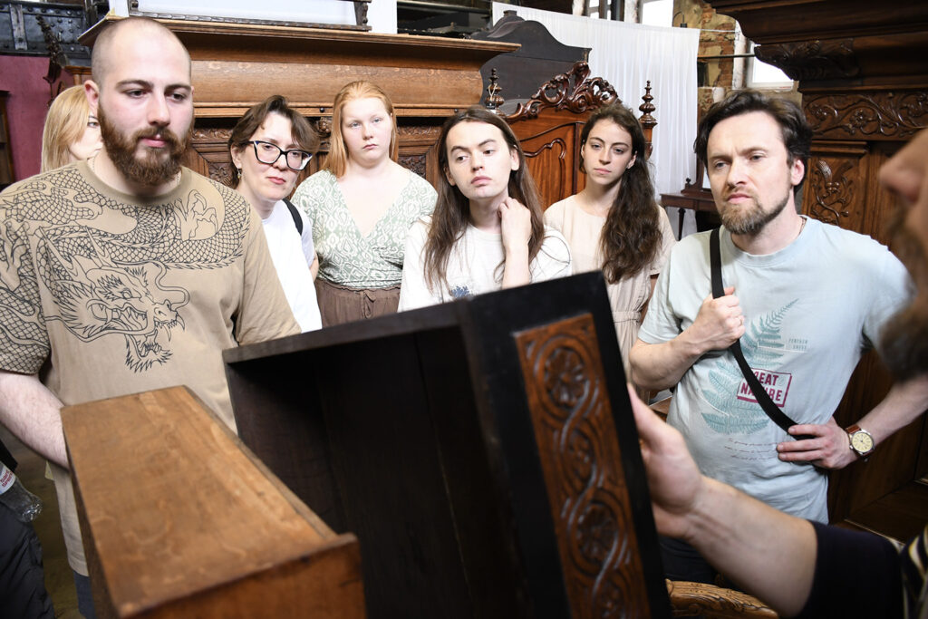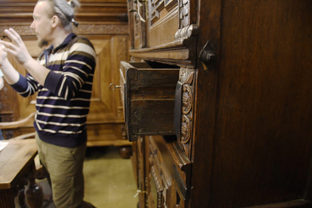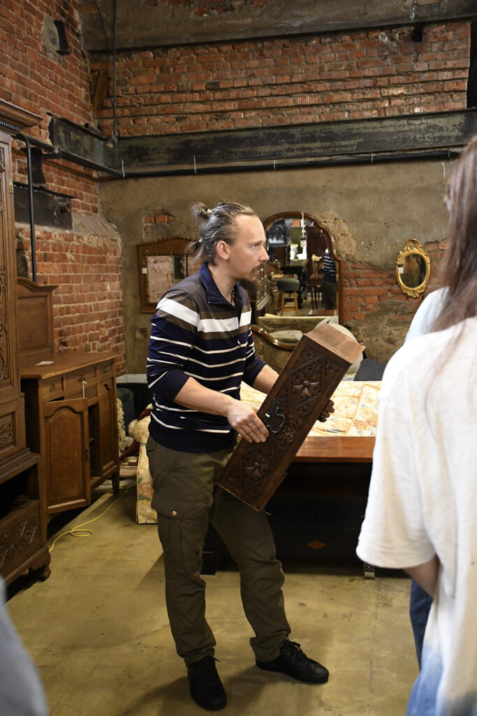 Максим Тарасов и Александр Багров рассказывали о тех вещах о которых не узнаешь при посещении музеев или выставок. Как определить возраст изделия, новодел это или нет. О видах старинной отделки, и конечно же о эволюции нашего любимого соединения «ласточкин хвост». Мы погрузились в искусство столярного ремесла на глубину 17 века.