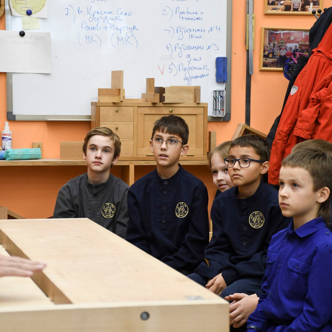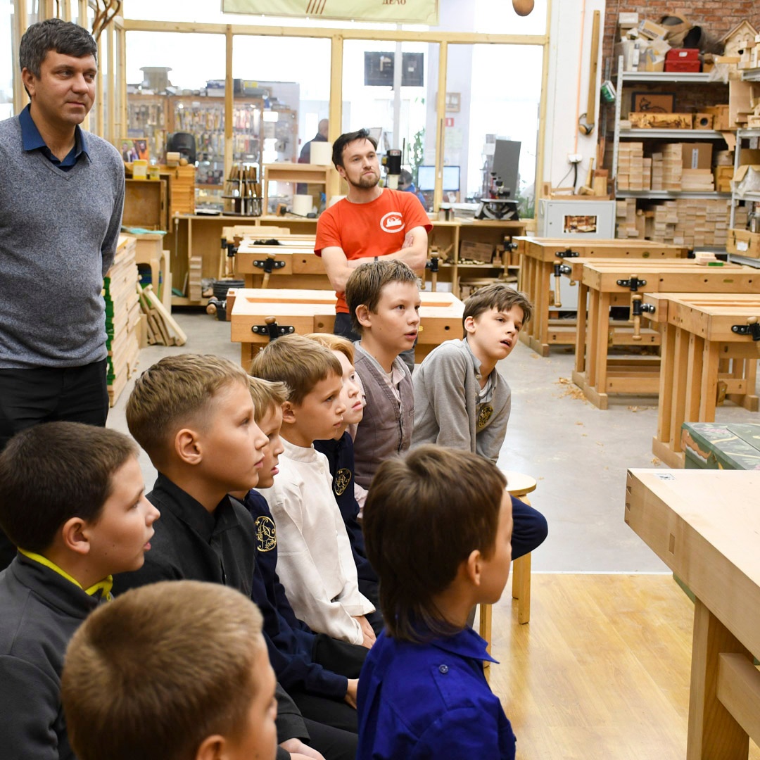 дети на экскурсии в школе RubankovАлексей Юрьевич Дейкин знакомит детей со столярным искусствомдети на экскурсии в школе RubankovАлексей Юрьевич Дейкин демонстрирует работу рубанком