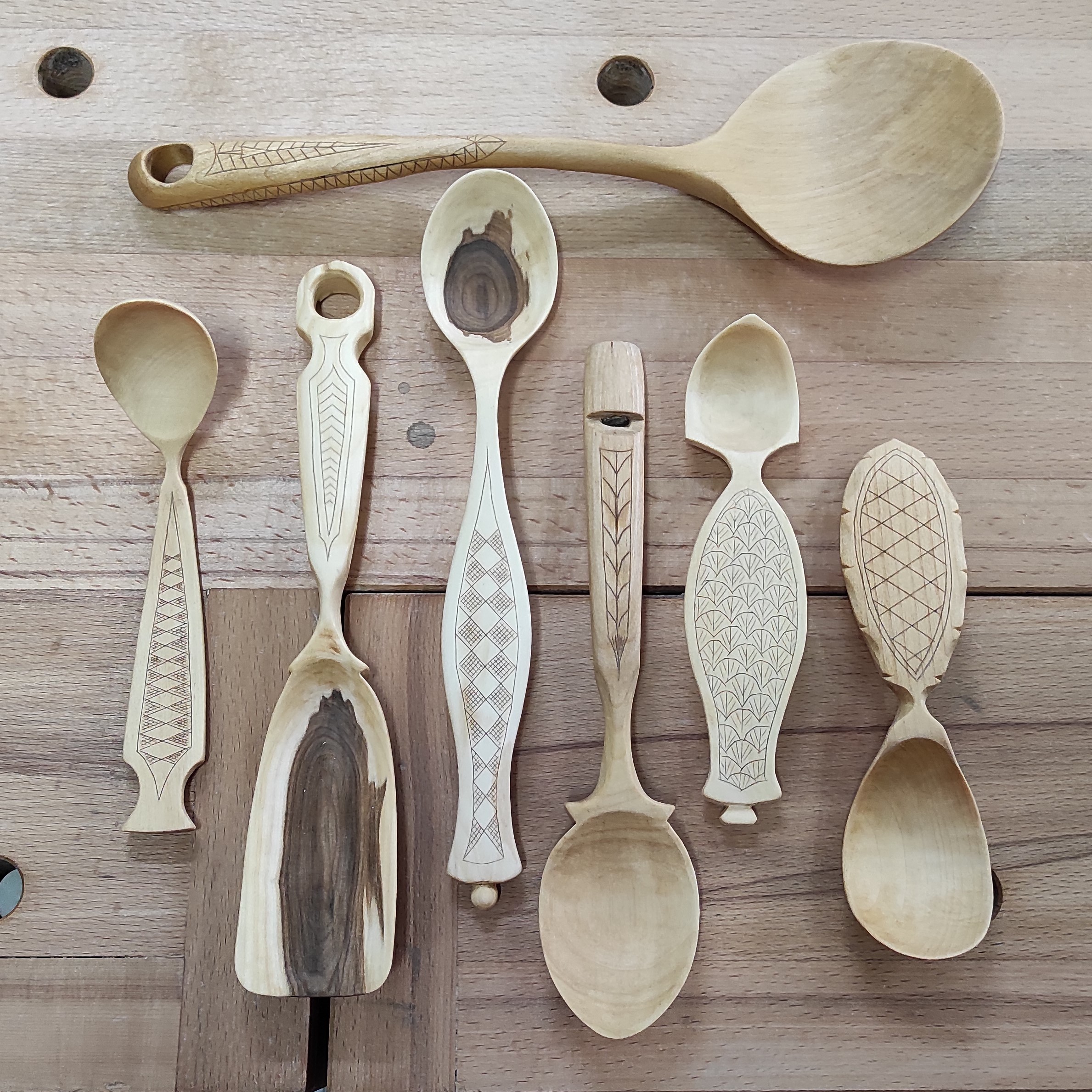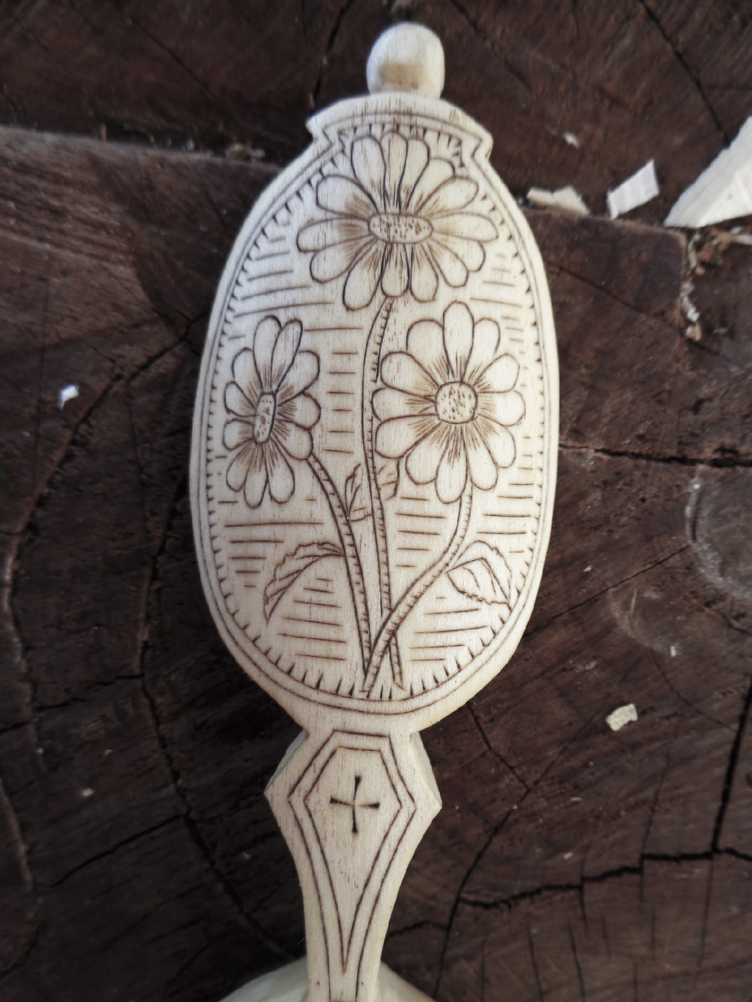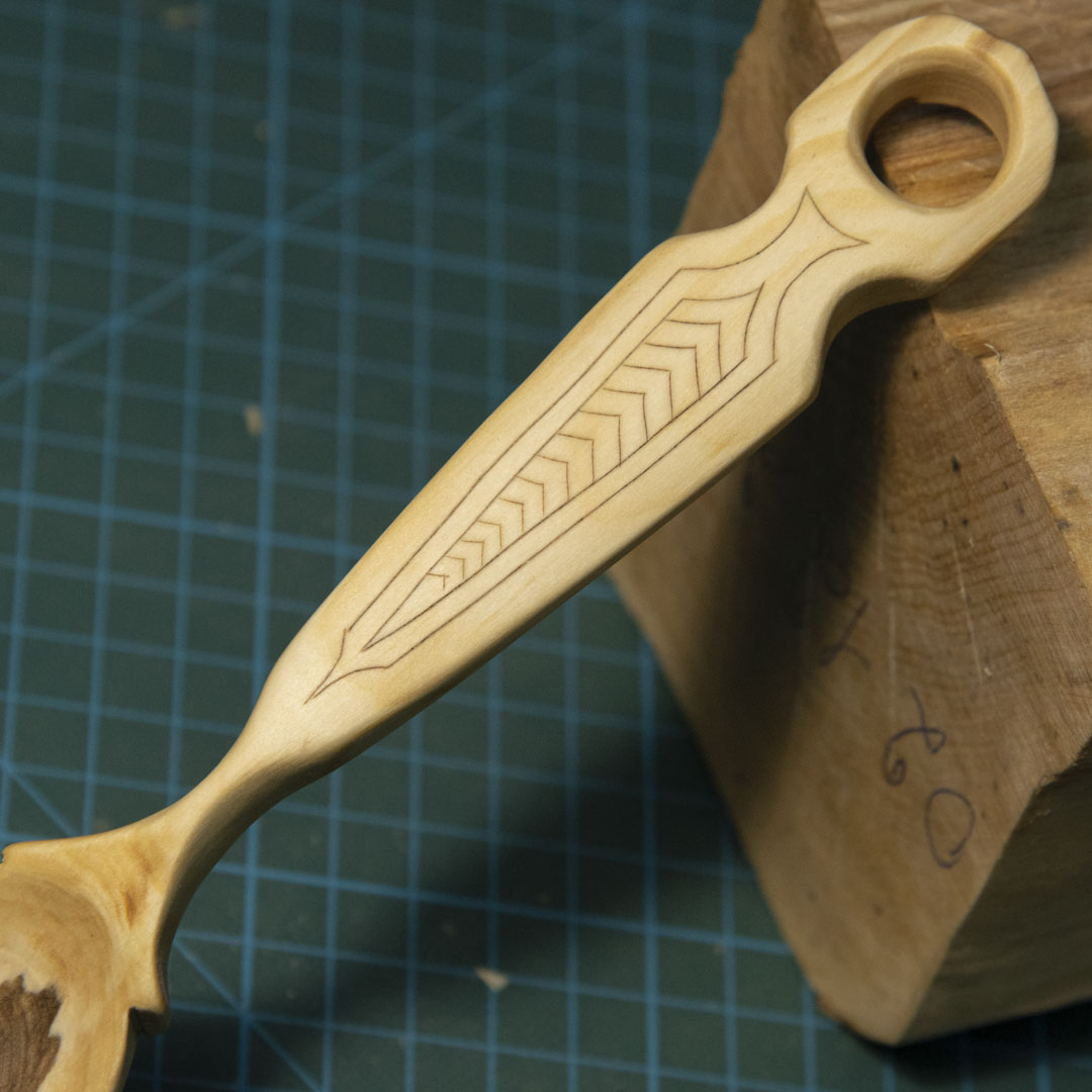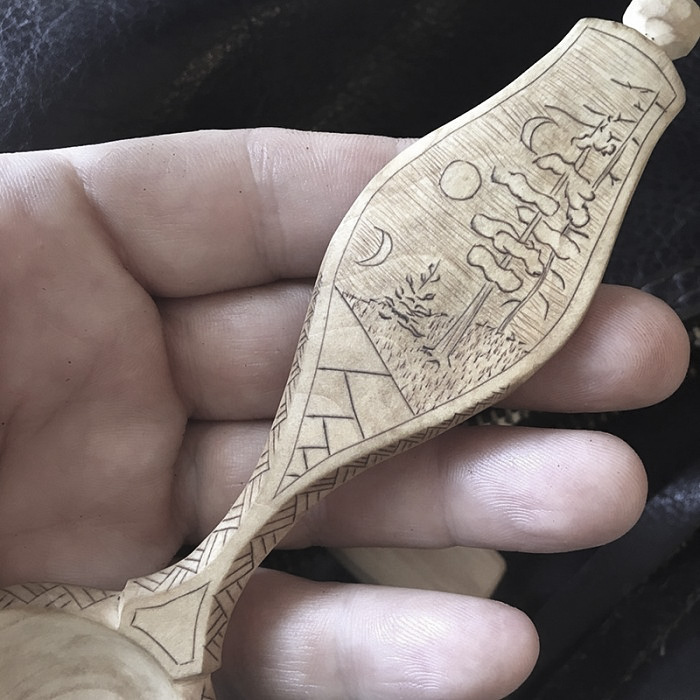 Научиться всем нюансам этой незамысловатой техники можно на курсах нашей школы. Где в программу включено декорирование деревянных изделий рисунком. Самым интересным и сложным в изучении будет художественная часть: подбор рисунка, разметка, соблюдение масштабов и конечно же значения рун, которые часто используются в декорировании ложек, лоханок и кукс.