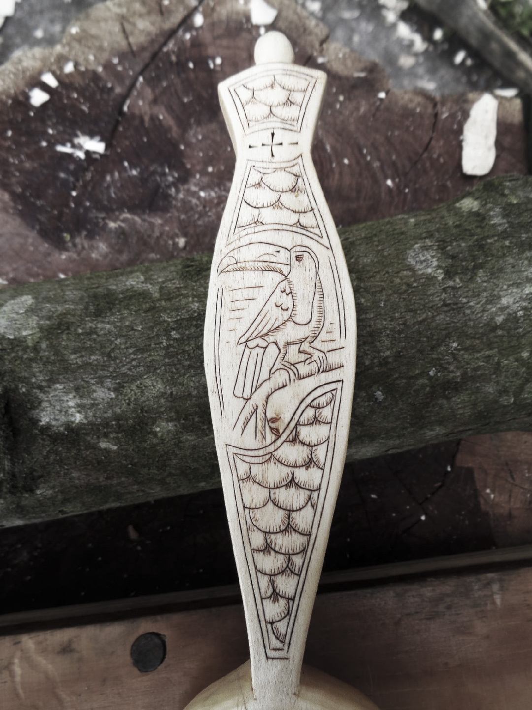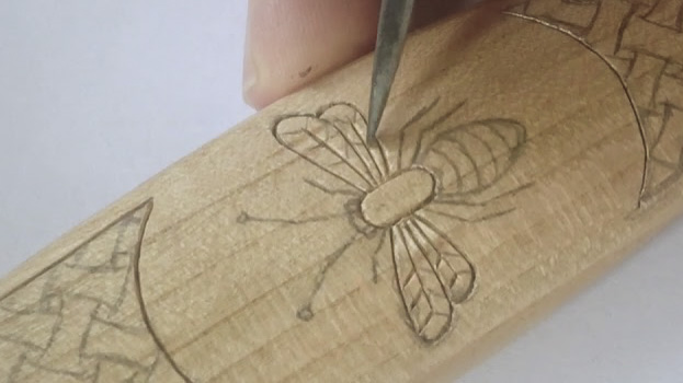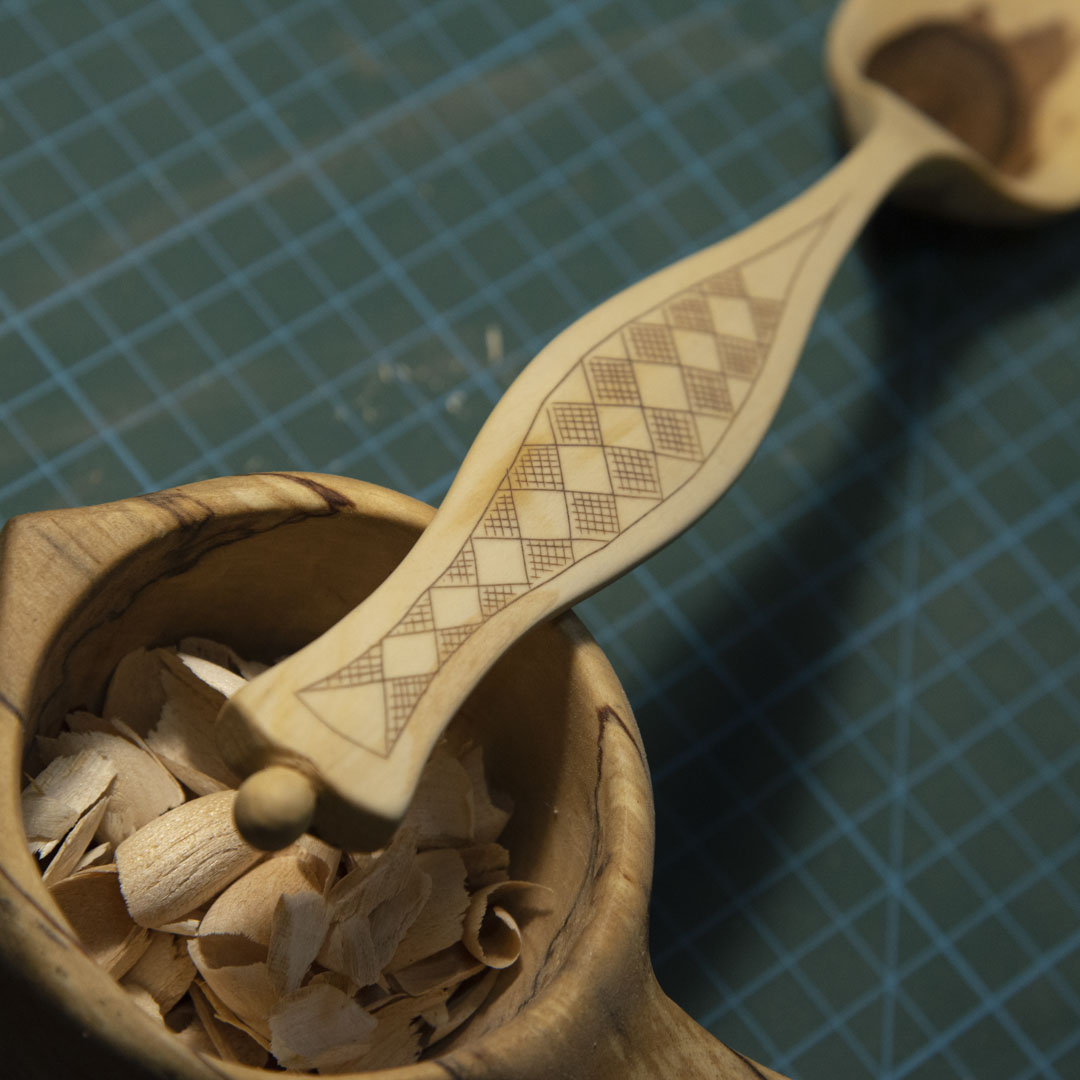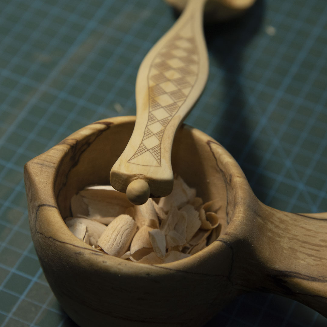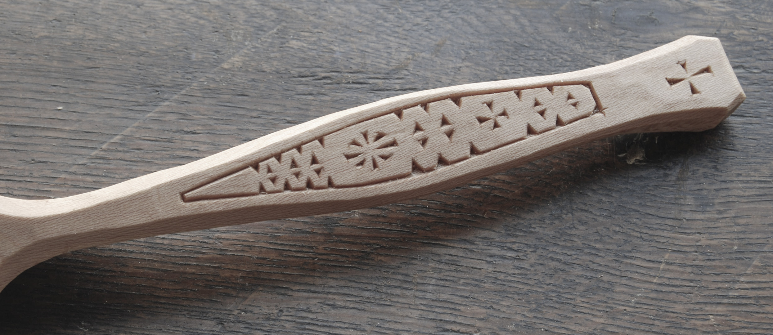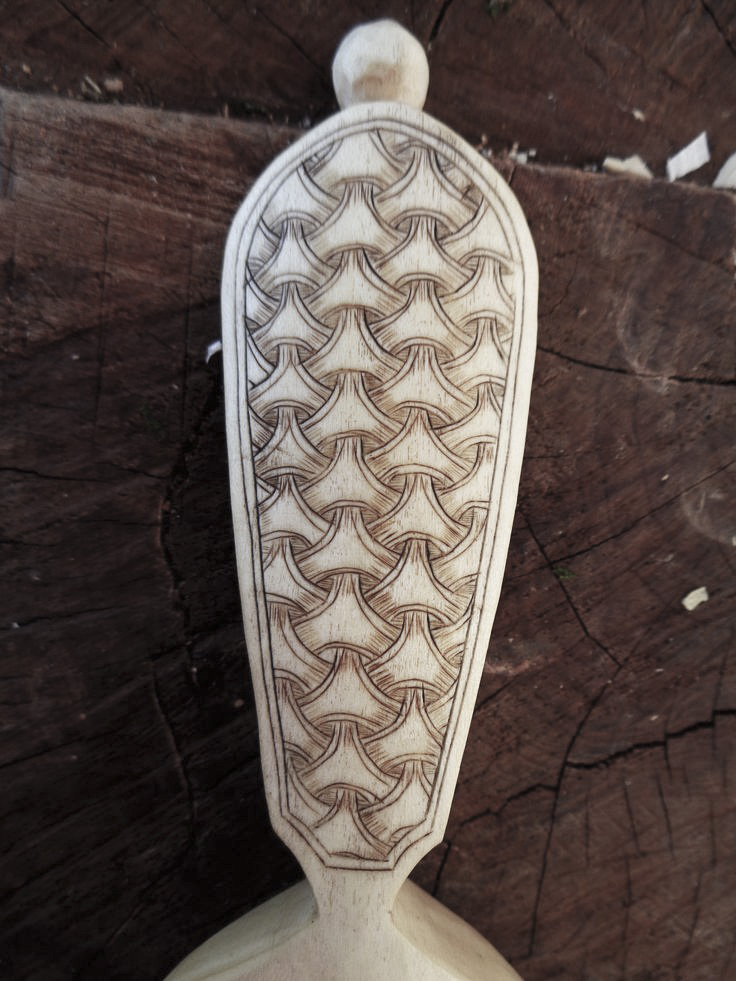 это скандинавская традиция прорезания тонких декоративных линий и узоров на деревянных резных изделиях. С последующим заполнением прорезей пигментом для придания контрастности. В основном используют темный пигмент: уголь, цветной воск, корицу, кофе и т.п. Порой звучит и Баркросинг, но об этом ниже.