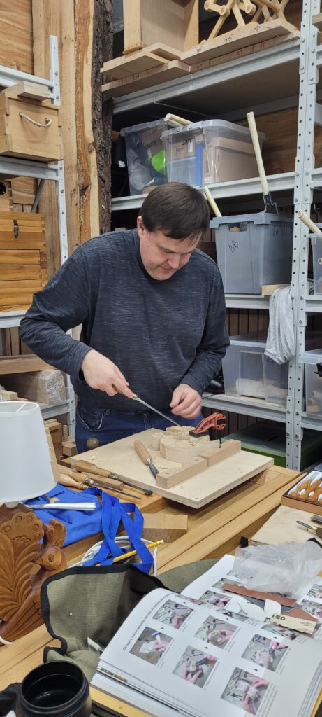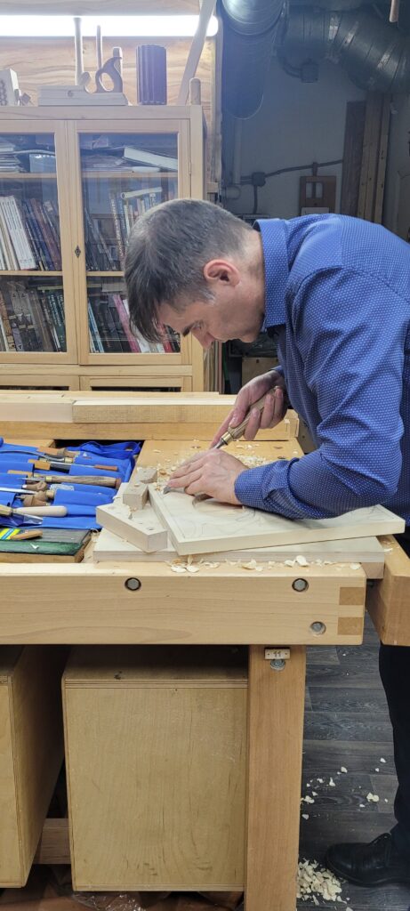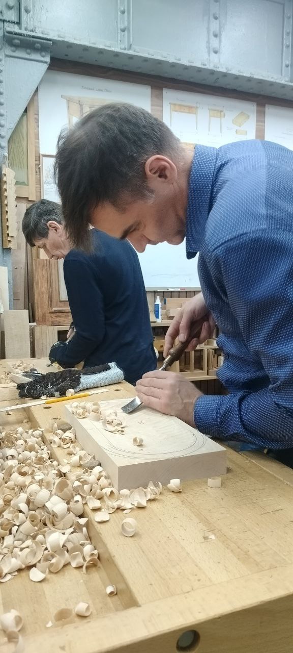 Уважаемые мастеровые, здравствуйте. В столярной школе «Рубанков» продолжает успешно работать мастер и педагог Владислав Геннадиевич Льненичка — талантливый резчик и вдохновляющий наставник, уже несколько лет делящийся своим опытом с учениками. За это время он создал для школы множество авторских резных картин, но главное — воспитал поколение увлечённых ремеслом учеников, многие из которых после окончания курса просятся остаться и углубляться в мастерство под его руководством.