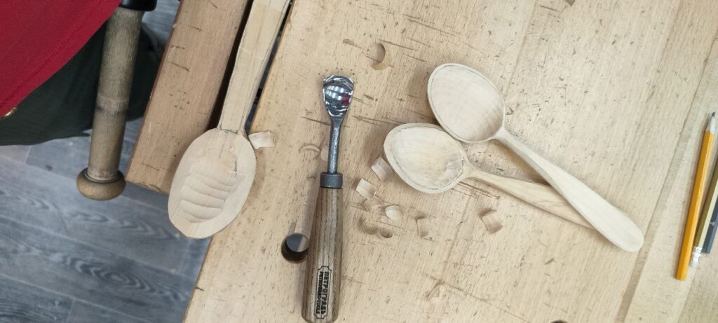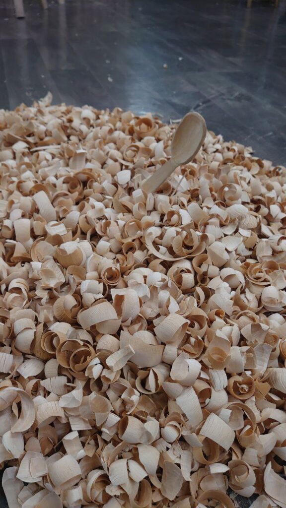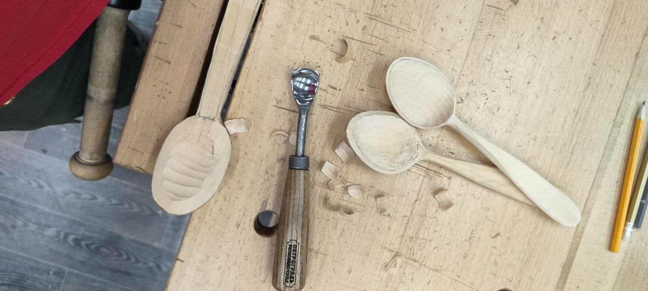 Все эти два дня мы рубили топорами, резали стамесками — в итоге у всех готовы тарелки и ложки!