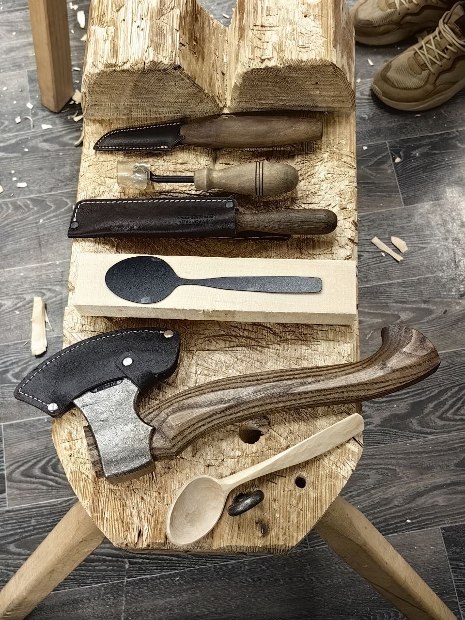 Основы работы с резчицким топором, полуклюкарзой, ложкорезом и другими инструментами.