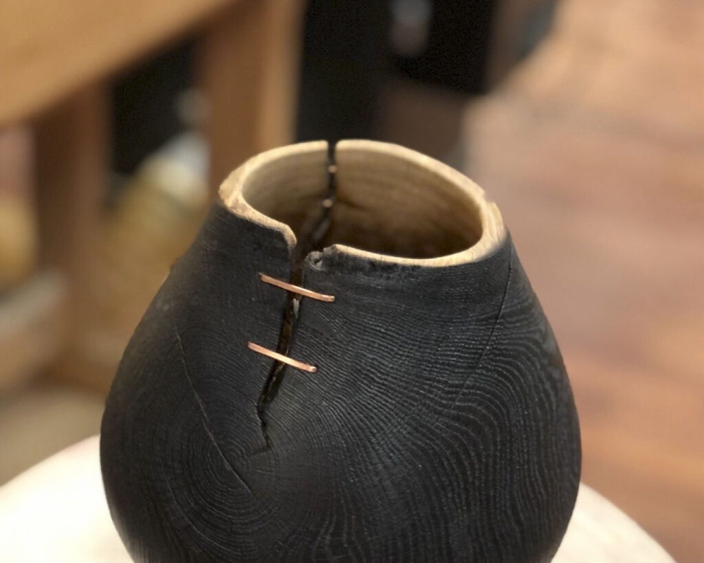 А в последующей постобработке в ход идет горелка для обжига или упаковочная нить для «зашивания» трещин, или столярное соединение «бабочка Хофмана», или даже латунные стяжки. В данном случае у фантазии автора нет границ.